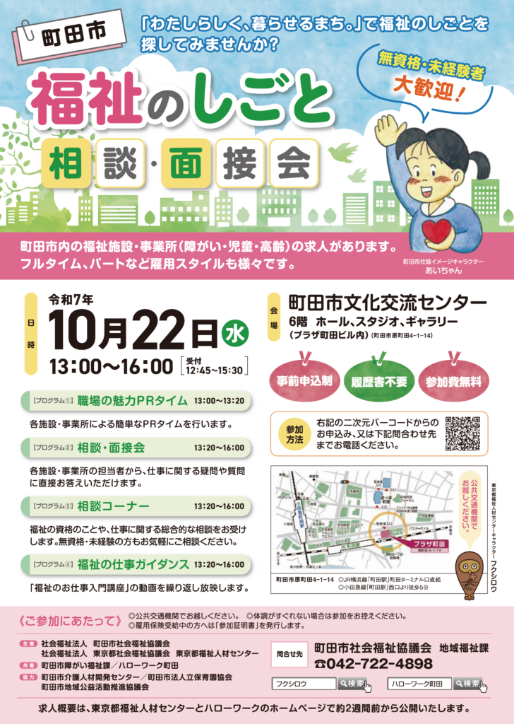 社会福祉法人芳美会は、町田市が主催する「福祉のしごと相談・面接会」に出展いたします。